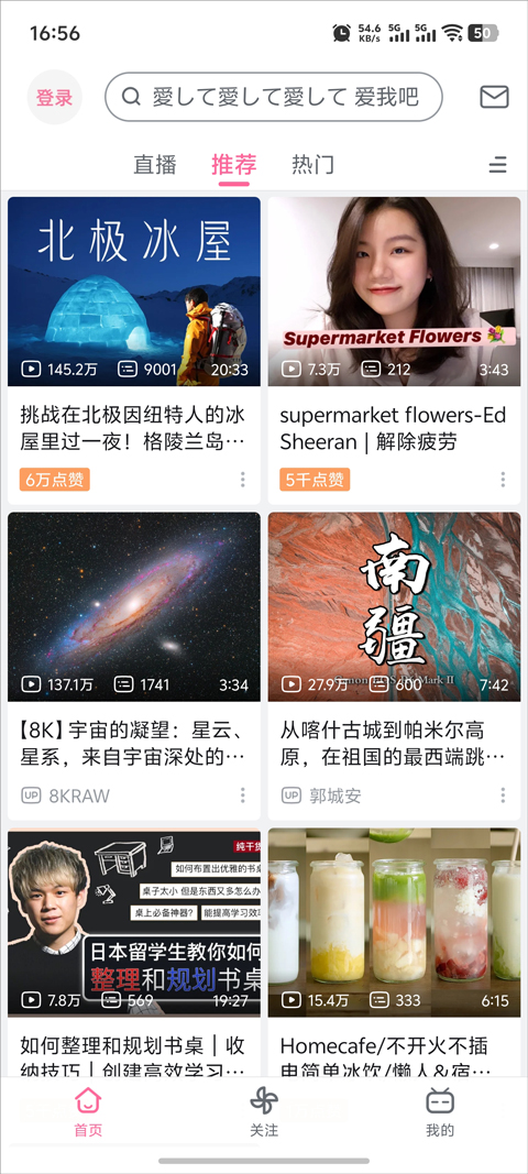 基础观看:进入主界面,可通过顶部频道栏或“推荐”页浏览视频。点击视频即可播放,在播放器下方可发送弹幕或查看评论。
