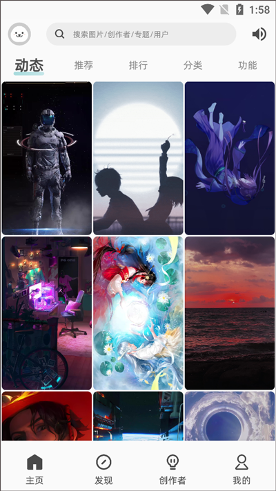 上传分享:在“上传”页面提交原创壁纸,与社区用户分享佳作