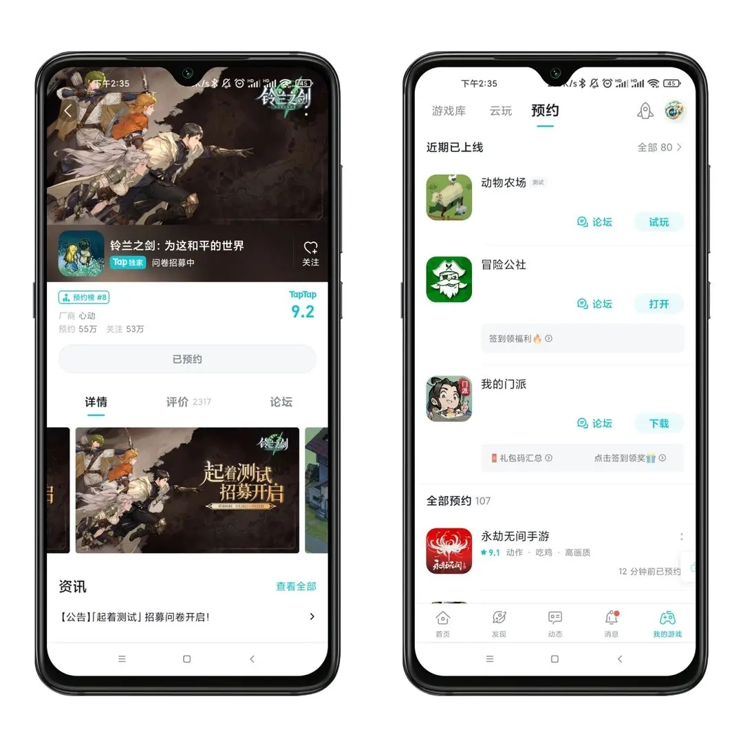 游戏开通预约功能后,可以在游戏界面点击预约,成功预约后可获得预约奖励(游戏方设置),以及上线时第一时间的推送~快预约起来吧!同时可以点击我的游戏-预约中查看所有预约游戏(点击右侧全部界面-移除对应游戏预约)