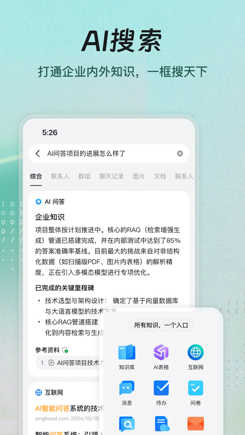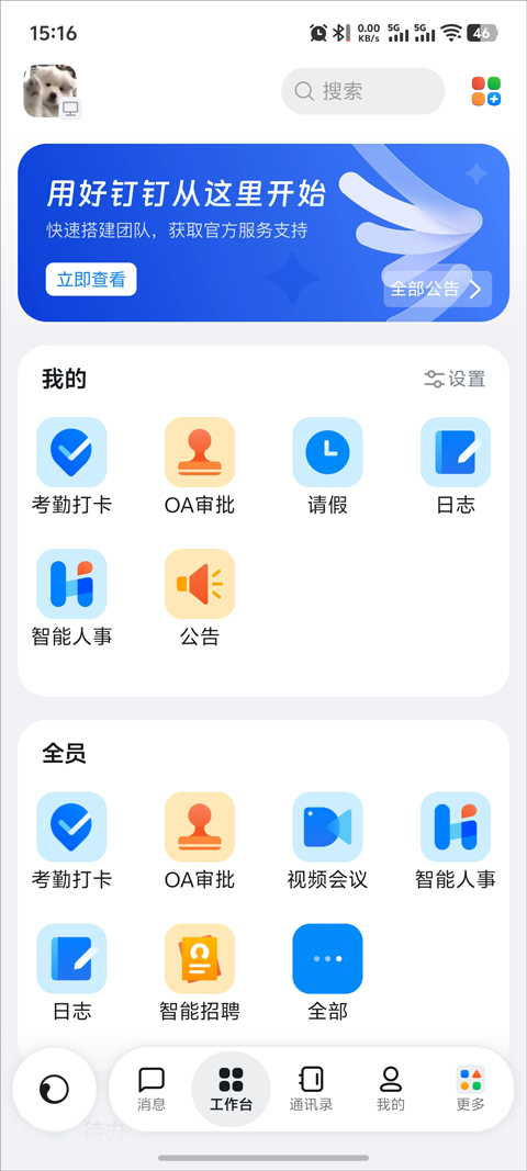 统一的工作台: 集成所有工作应用与消息通知,实现一站式办公入口。