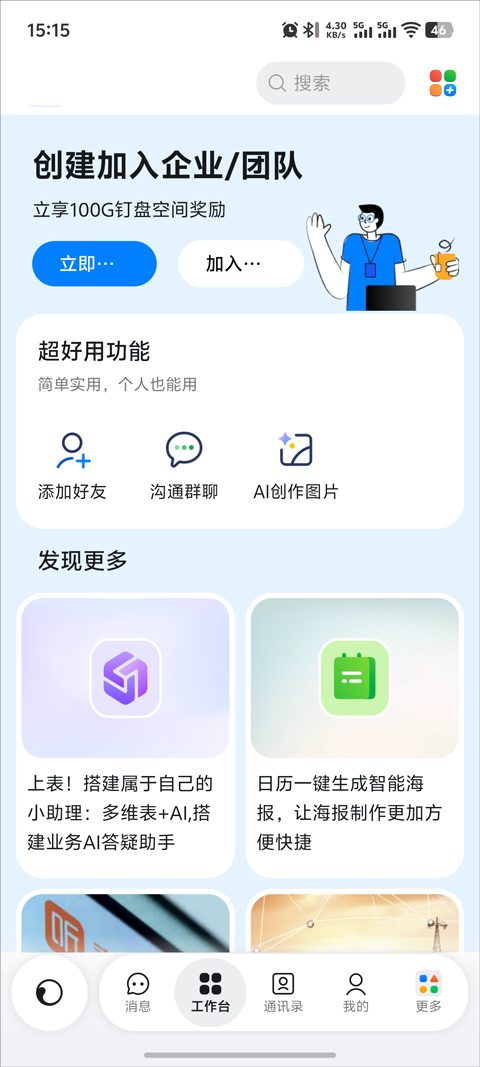 加入团队: 使用他人提供的团队二维码或链接加入。
