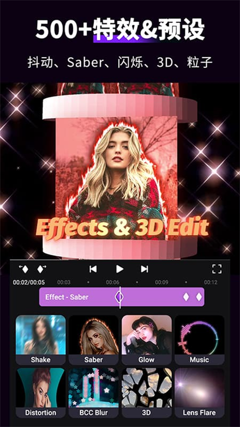 海量特效资源库:内置数千款动态文字、炫酷转场、滤镜、贴纸及粒子特效。