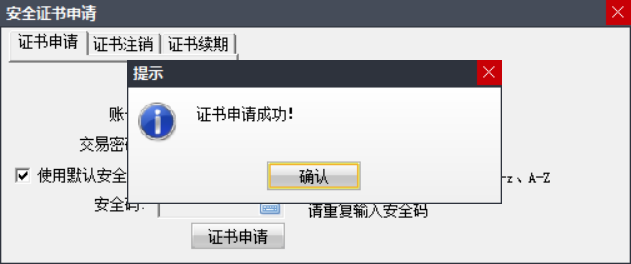 (3)证书申请完成后,系统返回“证书申请成功!”提示。