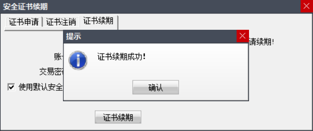 (2)证书续期成功后返回提示,然后返回主登录界面进行登录。