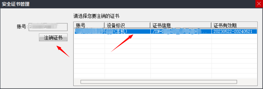 (2)弹出证书信息列表,选择需要注销的证书,点击“注销证书。”