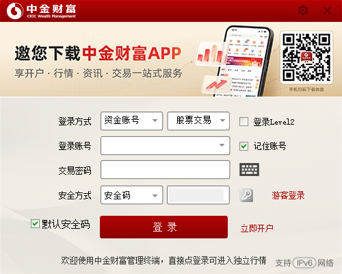 中金财富管理终端PC版(又名“中金财富电脑版”)是由通达信公司为我司定制开发一款股票行情交易软件,向投资者提供综合的财富管理服务支撑。其支持全市场交易,包括普通交易、融资融券(信用交易)、港股通、股票期权、科创板、基金等,全网行情高速刷新,并支持通过扫码于中金财富APP同步自选股。资讯、数据丰富,图文F10清晰明了,还支持业务办理、在线智能客服问答。需要的用户欢迎下载使用!