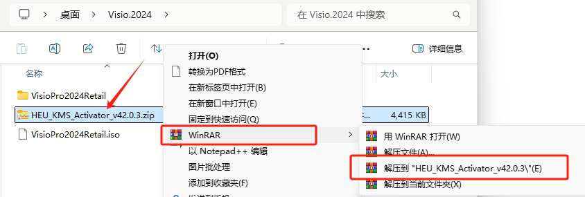06、打开之前解压后的文件夹,将压缩包【HEU_KMS_Activator_v42.0.3.zip】进行解压。