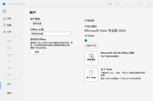 Office 2024 具有新的主题和调色板。 Visio 2024 也引入了这些更改,这意味着与其他办公应用程序的外观保持一致。 新主题具有更生动的色调,体现了 Microsoft 对辅助功能的承诺。