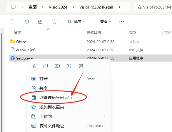 03、右键程序【Setup】,点击【以管理员身份运行】。
