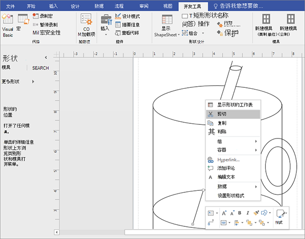 右键单击要删除的线条或形状,然后单击"剪切"。
