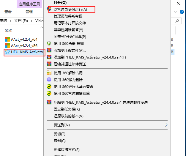 5、右键以管理员身份运行【HEU_KMS】激活工具