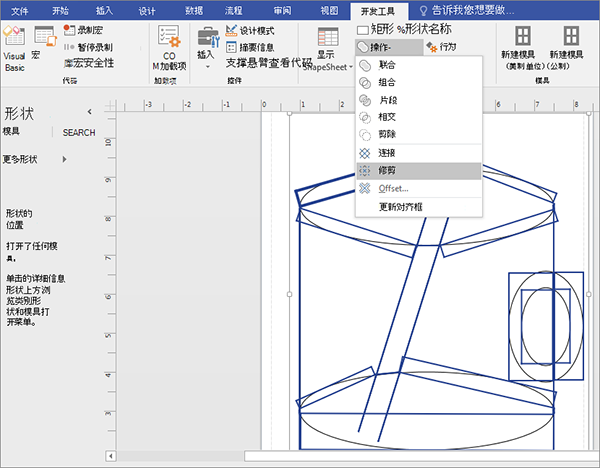 在"形状设计"组中,单击"操作",然后单击"剪裁"。