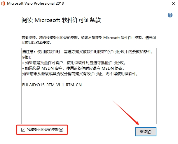 2、勾选协议后,点击继续。