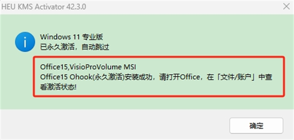 11、激活成功,点击确定。
