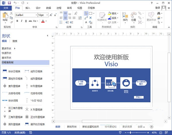 在新版本中我们增加了一个新的基于XML的文件格式(.vsdx)来替代原先的(.vsd),(.vdx)和(.vdw),这就意味着你可以通过Office 365服务或者SharePoint等不需要额外的操作就能直接在网页上浏览文件。