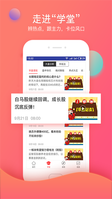 3、”学堂“页面有一些投资视频教学,建议新手用户查看。