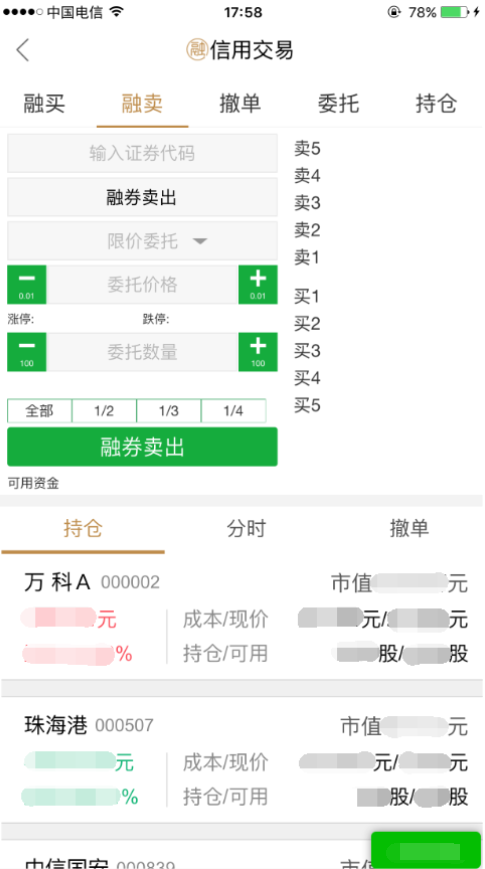 (2)融券:在“融卖”目录下,选择“融券卖出”,输入“证券代码”、“委托价格”、“委托数量”确认完成。