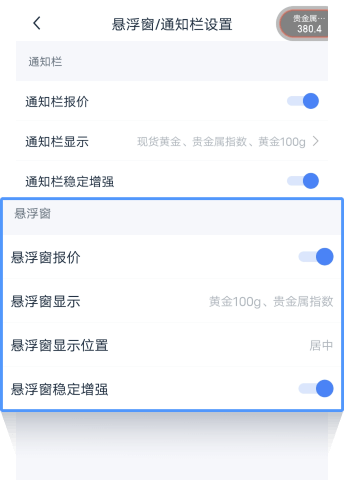 在安卓端的App中找到设置——悬浮窗/通知栏设置——悬浮窗报价,选择打开,这时候会提示打开系统权限,需要您去手机系统设置中,允许口袋贵金属在其他应用上层显示,这样才能够打开悬浮窗。设置完成后,为了保证悬浮窗的稳定性,建议启用悬浮窗稳定增强功能。