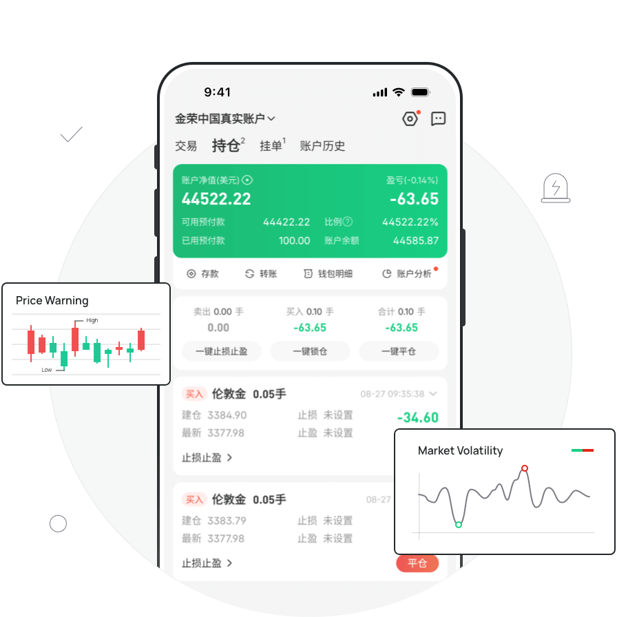 金荣中国App是一款正规的黄金交易软件,百万用户共同的专业之选,全球领先的贵金属投资平台!实时同步MT4/5数据,无缝连接全球市场,随时随地高效交易。同时软件内集成了先进的交易内核,为专业投资者提供了包括数十种技术指标、多时段图表分析、自定义预警及智能交易系统(EA)支持在内的全套高级工具。同时其界面设计简洁直观,功能布局合理,让投资者能够迅速上手并专注于市场动态。需要的用户欢迎下载使用!