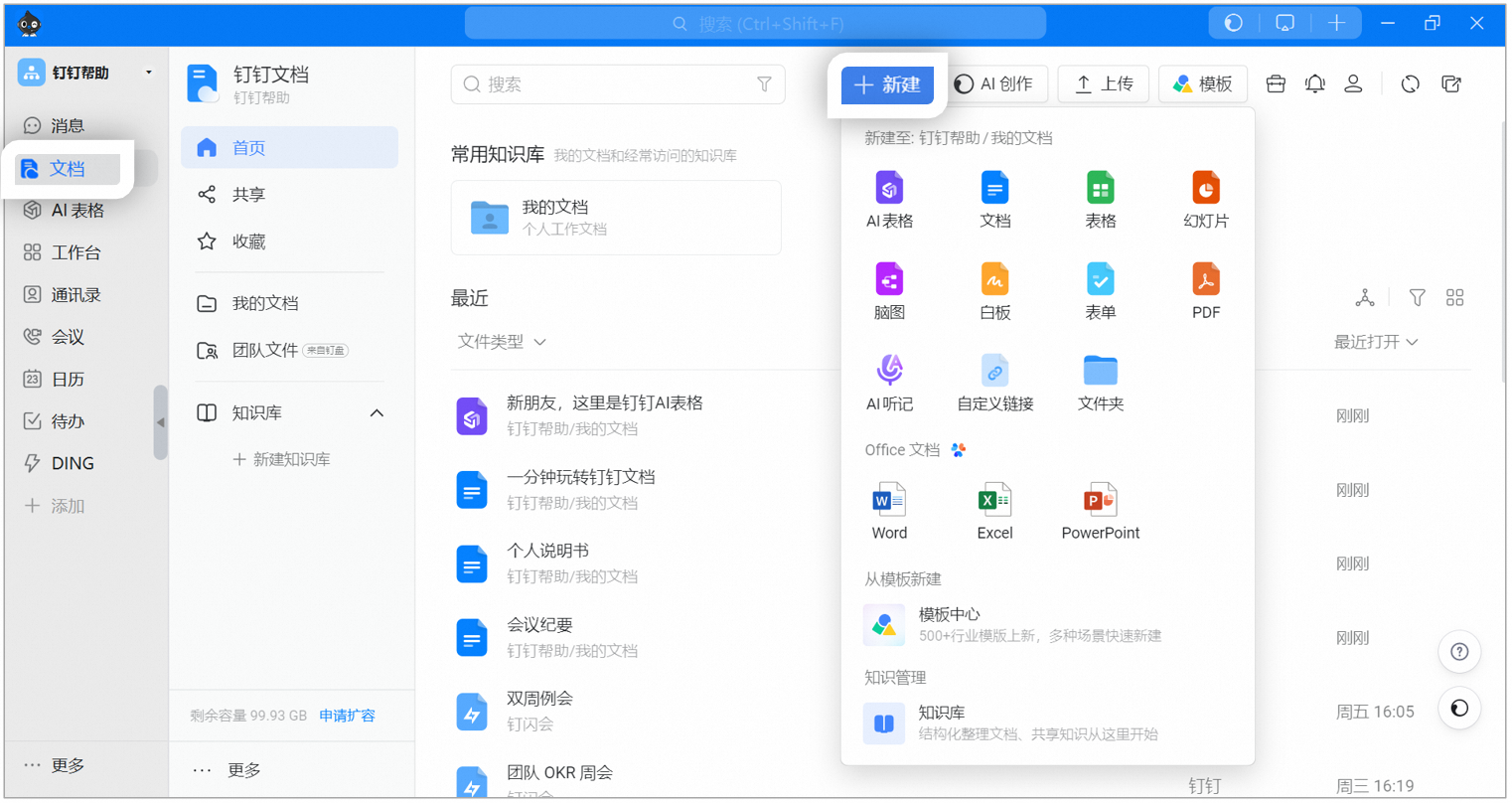 在左侧菜单栏中点击【文档】>“新建”。