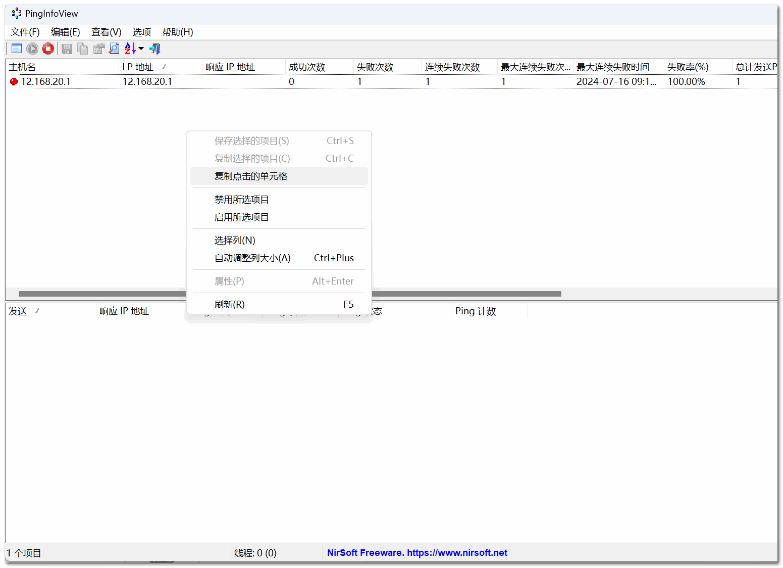 PingInfoView中文版传统的 ping 命令只能一个一个测试,切换查看非常麻烦,而且只能看到简单的数字,无法直观感受网络质量的变化趋势。PingInfoView中文版是一款免费、轻量的批量Ping检测工具,可用于批量 Ping 多个IP地址或主机名,并实时监控网络连接状态,并且无需安装即可使用,适合网络管理员、IT 专业人员和高级用户快速检测网络连通性、排查网络故障问题,网络监控。需要的用户欢迎下载使用! 功能特色 1...