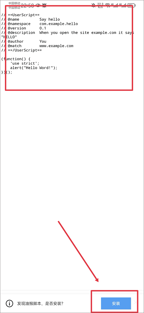 7、进入后就会显示脚本代码,你可以选择复制脚本代码添加安装,也可以直接点击下方弹出的安装即可。