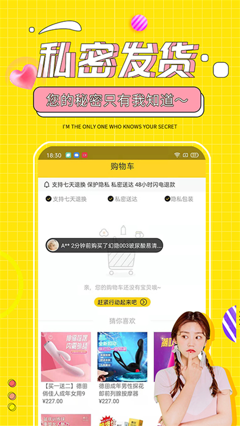 1、情感配对购物:独创的“双人购物车”功能,可与伴侣或好友同步选购情趣用品、情侣装等商品,支持心愿单共享与一键互赠,让购物成为情感互动的新方式。