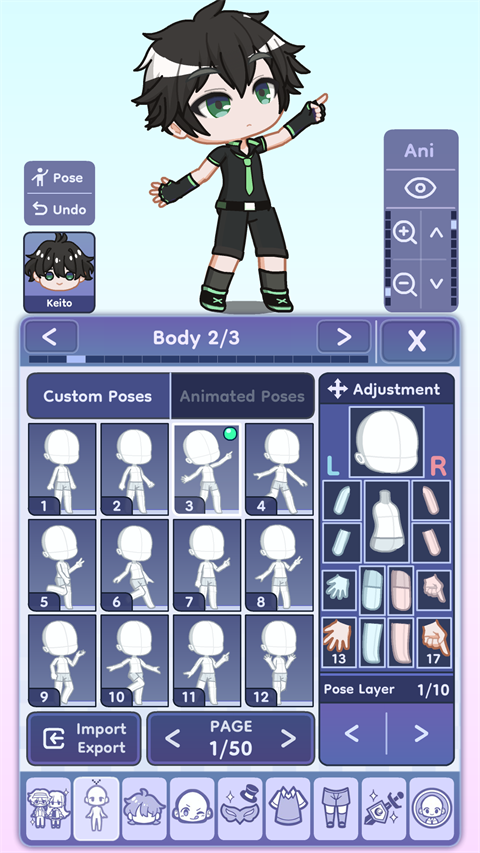 提供超过数百种服装、发型、配饰与表情选项,搭配全新导入功能,可上传本地图片作为角色贴图,实现真正独一无二的形象设计。
