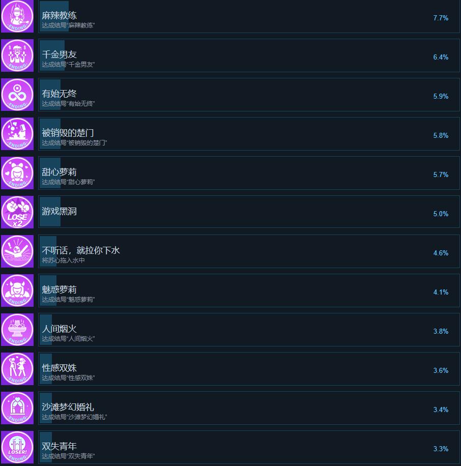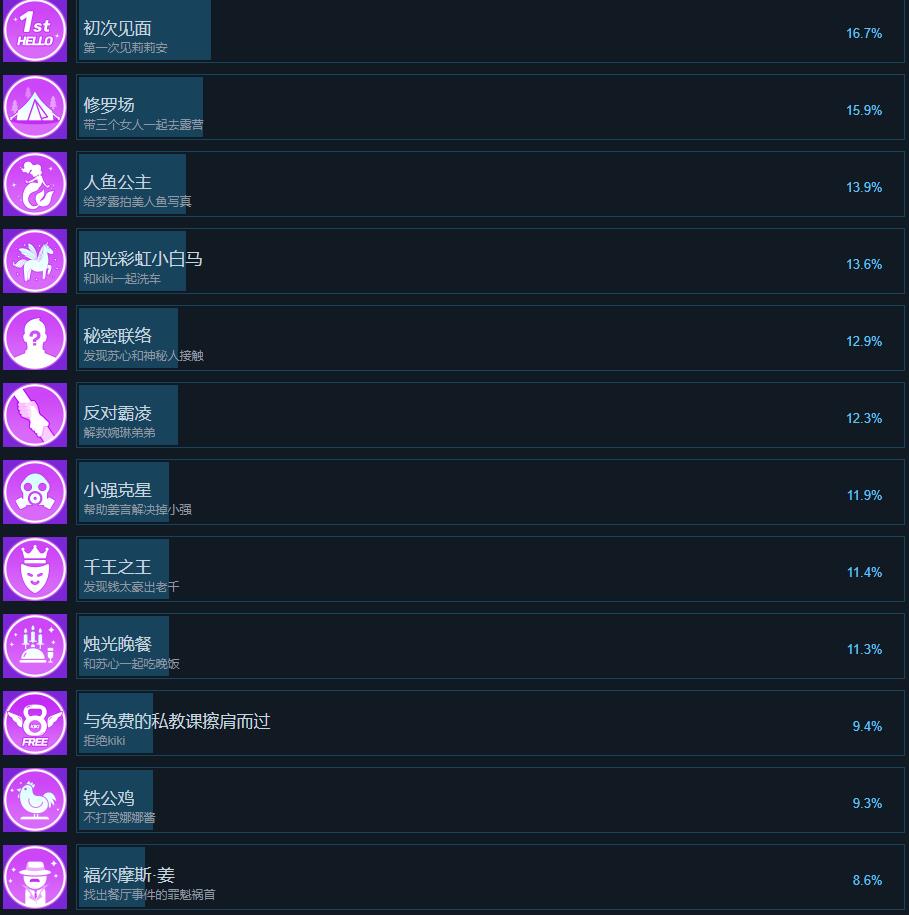 成就描述:任意一个女生好感度降到0以下