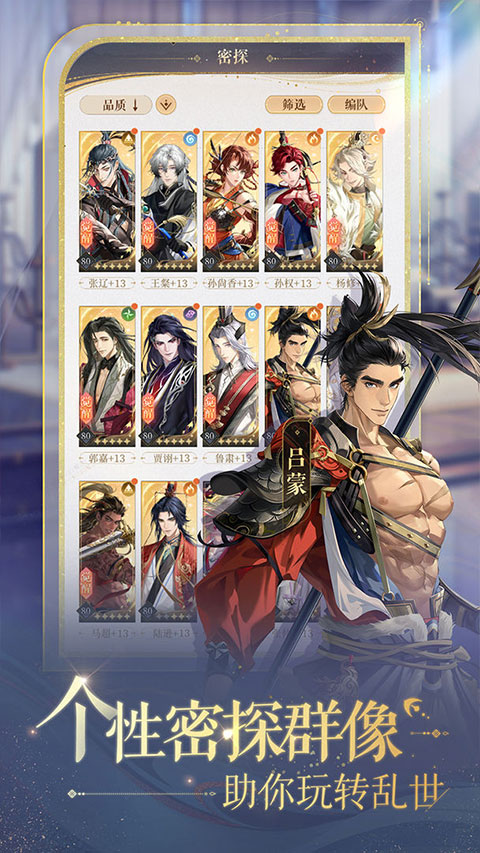 收集诸葛亮、周瑜、孙策等经典角色,每位角色拥有专属剧情与技能设定。