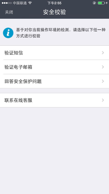 6 、选择校验方式并完成验证(根据账户操作环境,验证方式不同);