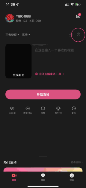 4、开启直播定位;