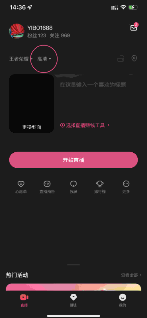 3、选择直播清晰度;