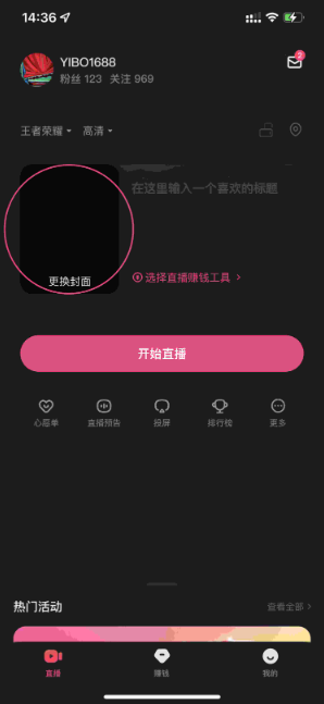 5、选择直播封面;