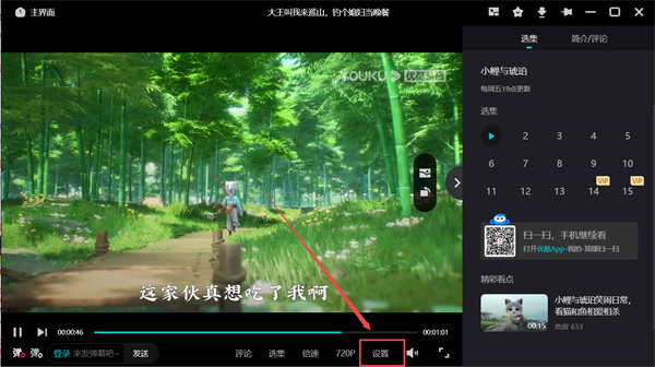 2、然后在播放界面的右下角点击“设置”按钮,如图所示;