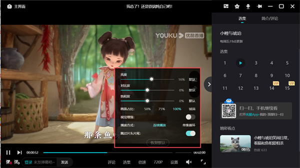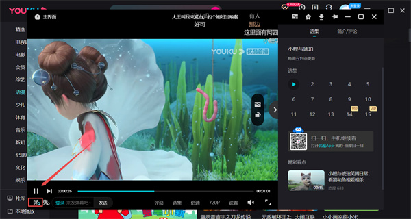 1、随意选择一个视频进行播放,比如小鲤与琥珀,在全屏状态下,点击左下角的【弹】开启弹幕。