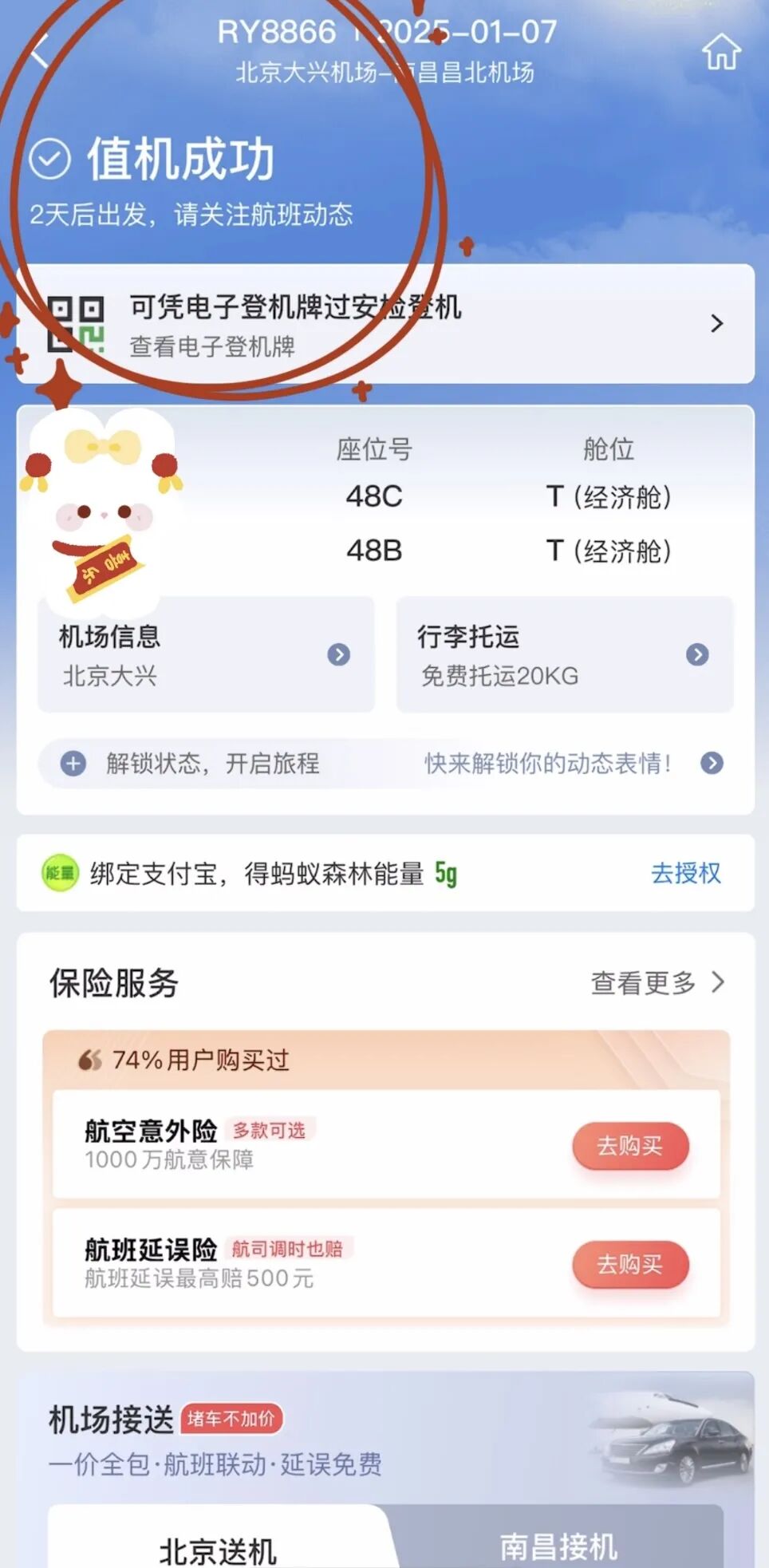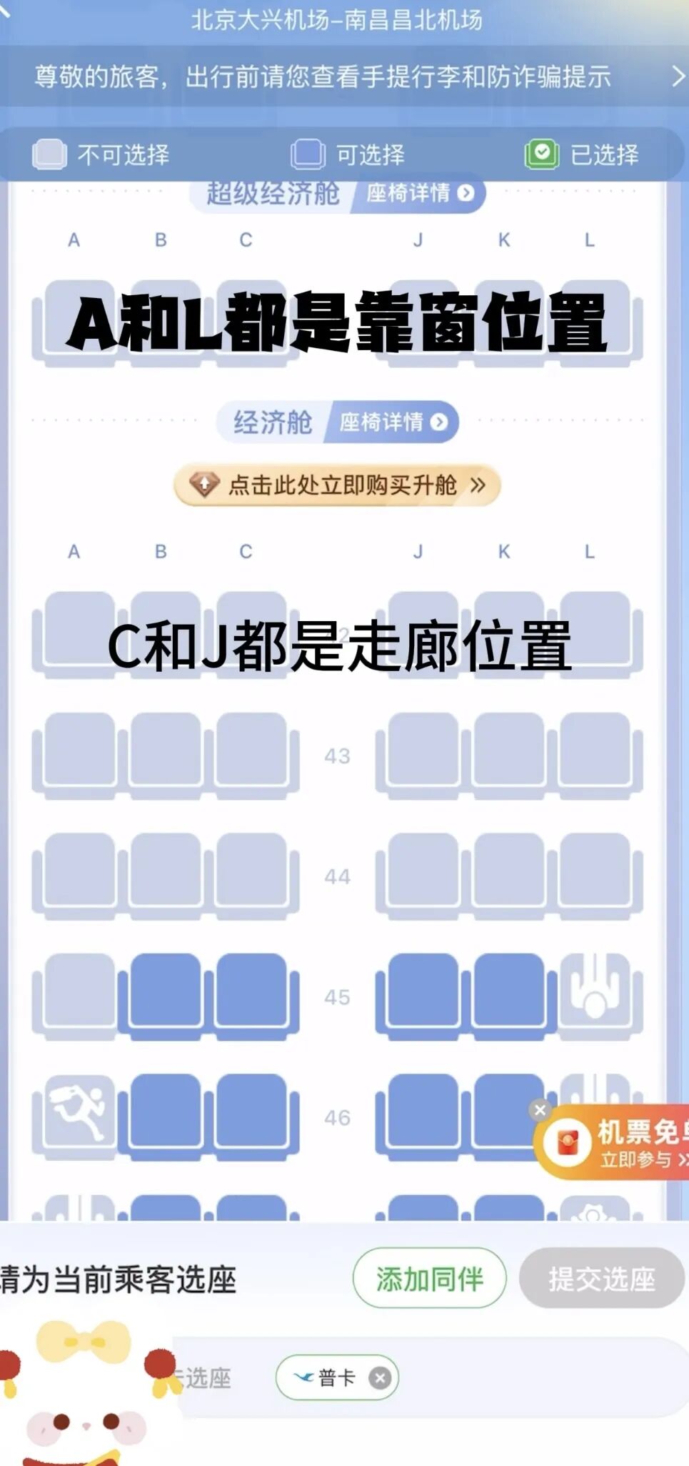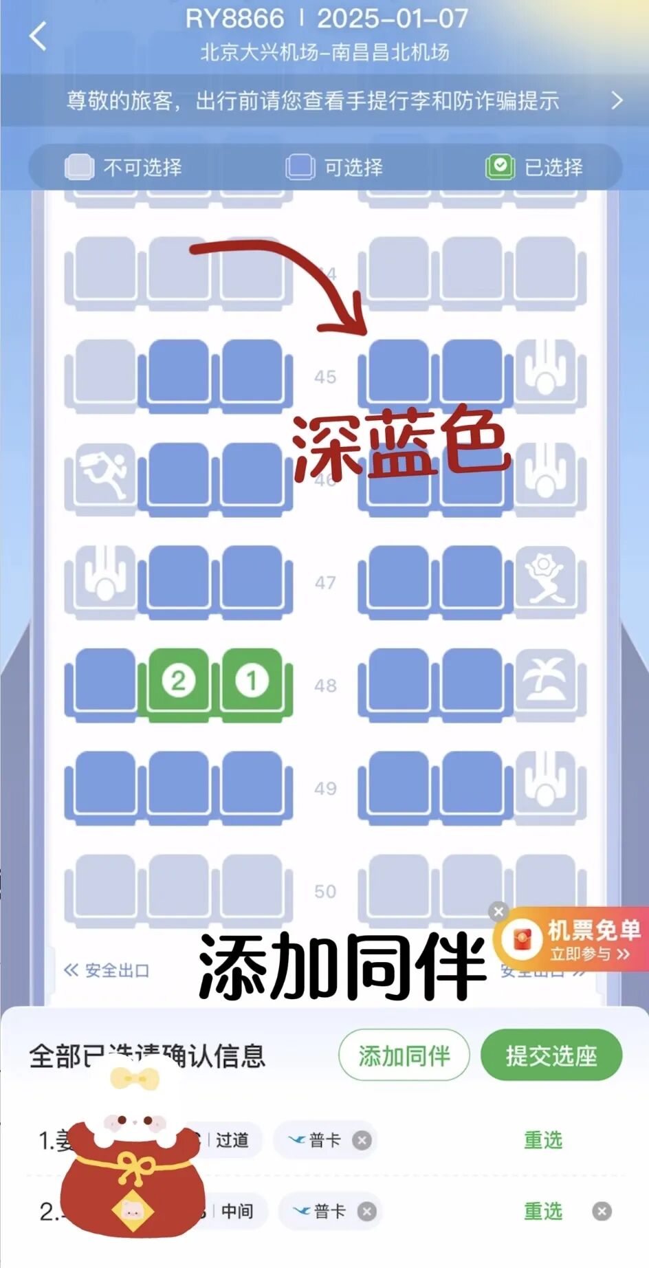手机值机:随时随地在线选座位,还能选状态和留言