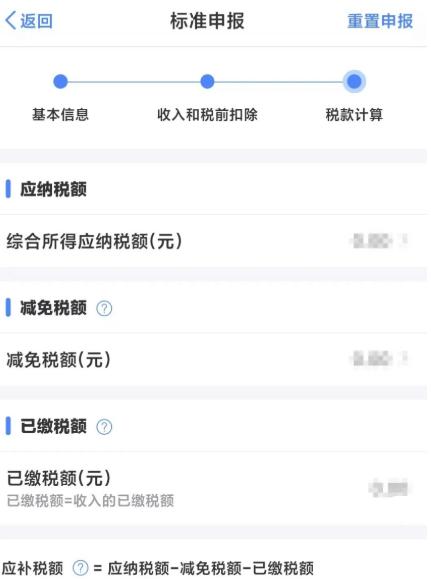 9、之后系统就会根据大家刚才填写的信息,计算出【应补税额】或【应退税额】,最后点击【提交申报】按钮。