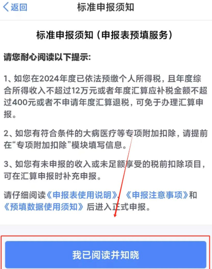 4、然后大家需要阅读申报须知,并点击【我已阅读并知晓】按钮。