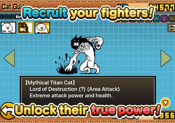 1、千奇百怪的猫咪单位:从普通猫咪到古代英雄、未来机甲,甚至神话生物造型的猫咪,收集超过数百种单位,每只都有独特的攻击方式与进化形态。