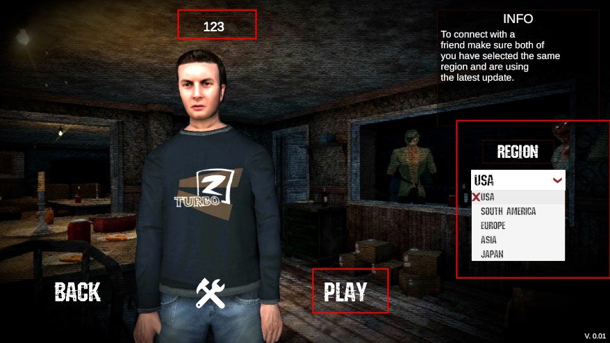 3、点击上方输入游戏角色的名字,点击右侧region选择区服,然后点击play;