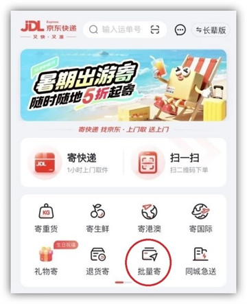 1、打开“京东快递”APP,登录账号,找到“批量寄”点击进入。