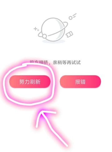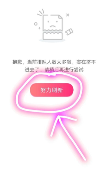 3、此时需不停点击【努力刷新】,绝对不能点报错或是返回,否则大概率进不去了。