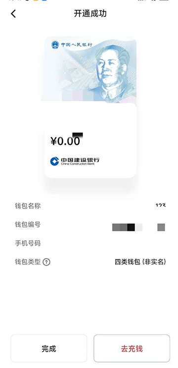 3、根据提示依次输入验证码、设置钱包名称、设置支付密码,待页面提示“开通成功”,即完成非实名数字人民币钱包开立。