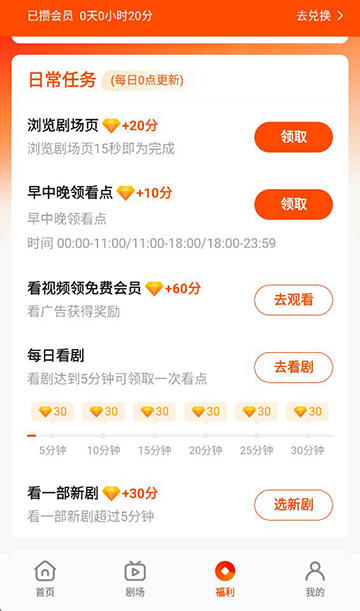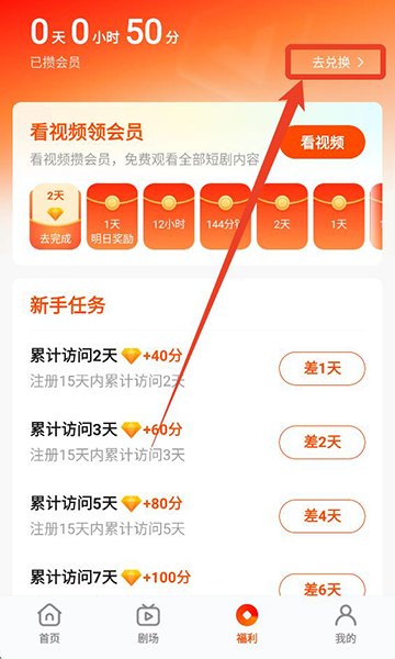 1、在下方【福利】界面,可以看到很多任务,完成相应的任务可以积攒会员天数。