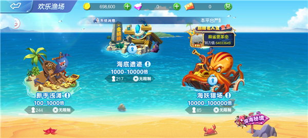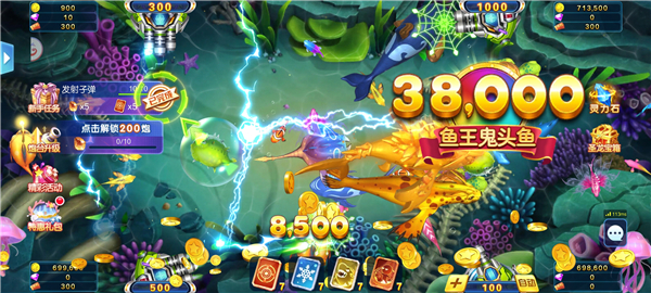 狂暴模式系统:积攒能量即可激活狂暴模式,短时间内大幅提升捕鱼成功率和金币收益,享受爽快连击的快感。