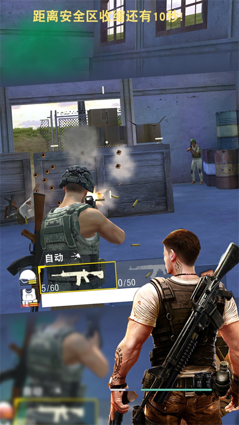 4、自由调节的难度与节奏:无论你是新手入门还是高手进阶,都可以自由调节游戏难度。你可以选择更慢的缩圈节奏,慢慢熟悉地图,也可以直接挑战最高难度,体验满编AI的围追堵截。