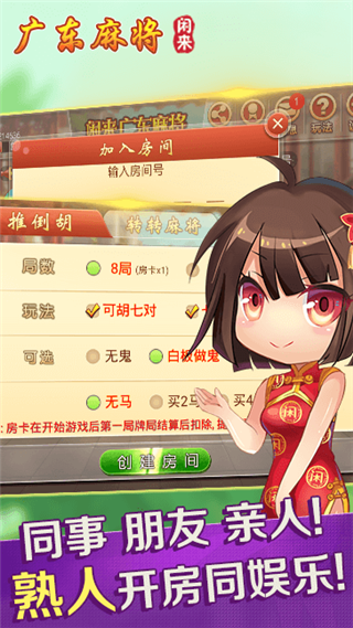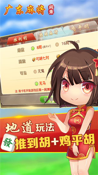 闲来广东麻将是一款专注于广东地区麻将玩法的手机游戏,基于广东地区广泛流行的规则,如鸡平胡、推倒胡、不吃牌、不点炮、红中等,力求为玩家提供原汁原味的广东麻将乐趣,致力于将线下搓麻将的真实体验还原到线上,让玩家可以随时随地与朋友或网友来上几局。作为一款集休闲、竞技、社交于一体的游戏,如果你是麻将爱好者,特别是钟情于广东麻将的玩家,它将是你非常值得一玩的精品游戏。