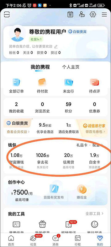 1、首先我们先进入到个人主页,我们可以看见有许多功能区域,分别是钱包,创作中心,我的工具等,这个时候我们需要点击钱包这个区域进入钱包界面。