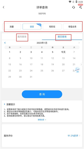 4、进入查询后,可选择流量、语音和短信,”语音“即为通话记录。每个电话通话时常都能找到。